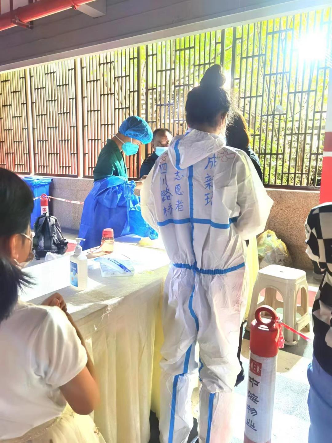 新材料集團職工王瀟作為一名黨員,更是一名四川路橋黨員先鋒服務隊的隊員,在做好家人的居家防護后,向所在小區(qū)申請了志愿者服務,9月3日,為了讓前一日連續(xù)奮戰(zhàn)到深夜的志愿者可以輪換休息,她顧不上吃飯喝水,堅守在核酸檢測一線崗位,維護秩序需要的時候就充當紅馬褂的角色,掃碼員緊張的時候就去穿上白大褂幫著掃碼,有群眾發(fā)生爭執(zhí)時就去當調解員,哪里需要她就出現在哪里,成為了小區(qū)群眾都認識的“萬金油”。