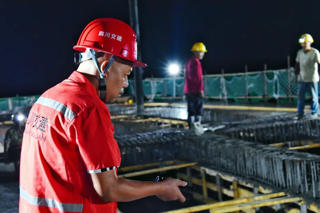 繼續(xù)前進(jìn),抓好復(fù)工復(fù)產(chǎn) 在做好搶險(xiǎn)救災(zāi)一線(xiàn)后勤保障工作的同時(shí),楊帆也積極投入到復(fù)工復(fù)產(chǎn)中,及時(shí)編制復(fù)工復(fù)產(chǎn)專(zhuān)項(xiàng)施工方案,組織進(jìn)行震后隱患二次排查和檢測(cè),確保項(xiàng)目部盡快按下“啟動(dòng)鍵”。9月15日凌晨1點(diǎn),大杉樹(shù)樞紐互通C匝道第1聯(lián)預(yù)應(yīng)力現(xiàn)澆連續(xù)箱梁完成混凝土澆筑,標(biāo)志著瀘石TJ10項(xiàng)目部復(fù)工率達(dá)100%。一直堅(jiān)守現(xiàn)場(chǎng)的楊帆眼里布滿(mǎn)紅血絲,但他很興奮,“經(jīng)過(guò)這次地震的考驗(yàn),大家更有拼勁、沖勁、干勁了,接下來(lái)我們會(huì)加快腳步、全力沖刺,確保完成全年生產(chǎn)任務(wù)!” “我是四川路橋人,是道路建設(shè)者、守護(hù)者,哪里有困難、哪里最艱辛,我就去哪里!”楊帆繼續(xù)在搶險(xiǎn)救災(zāi)和生產(chǎn)建設(shè)一線(xiàn)發(fā)光發(fā)熱,以實(shí)干擔(dān)當(dāng)詮釋四川路橋人的責(zé)任和擔(dān)當(dāng)。