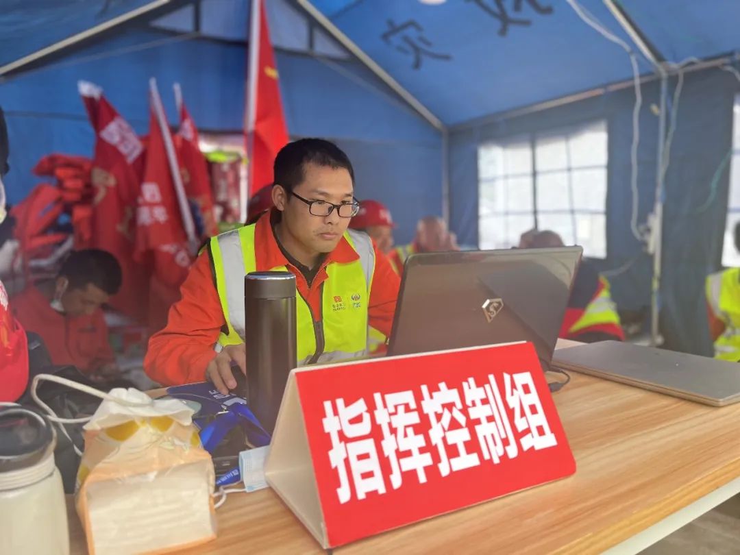 “我熟悉瀘定的地質(zhì)地形,又有多年的項目現(xiàn)場測量和施工經(jīng)驗,我申請加入搶險隊勘查組!先去前方探探路!”。鄧嘉在項目抗震救災(zāi)應(yīng)急救援會上主動站了出來。震后1小時,他匆匆給家里發(fā)了一條報平安的消息,便帶著勘探隊伍火速奔赴搶險點?,F(xiàn)場余震頻發(fā),多處山體滑坡,不時飛石滑落,鄧嘉冒著生命危險,在搶險點極速奔走勘查,“這條路段因山體塌方造成了堵塞,約50米,土石達(dá)2000余方,需要挖掘機、裝載機來疏通!”他緊急撥通后方搶險隊的電話,精準(zhǔn)地傳達(dá)著勘查的最新訊息。這為搶險隊僅用6小時就搶通318國道甘谷地段節(jié)約了時間、提供了方案。