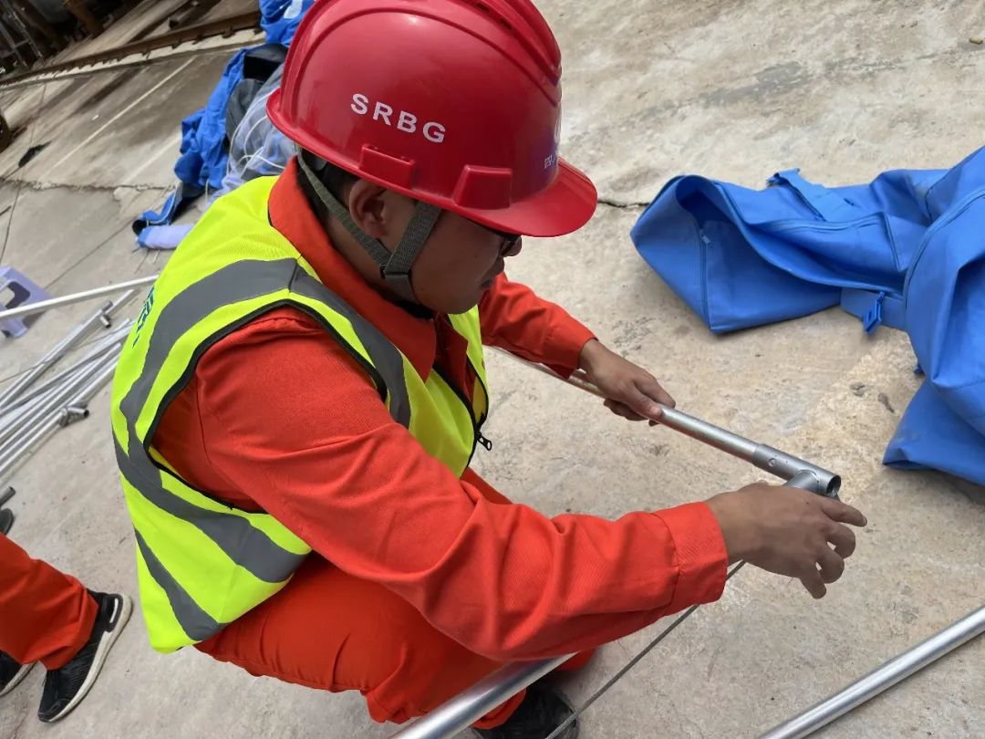 灣東村地處山間,夜里時有暴雨,導(dǎo)致大渡河水位上漲、水流更加迅猛湍急。原本于9月10日搭設(shè)的棧橋基礎(chǔ)沒能經(jīng)得住江水怒濤一夜的沖刷而損毀。面對如此突發(fā)情況,鄧嘉有些沮喪,但一想到任務(wù)緊急,耽誤不得,他立即打起精神,與有經(jīng)驗的老工長們進(jìn)行商討,尋找新的搭橋點位,并對棧橋結(jié)構(gòu)及材料重新計劃,爭分奪秒制定出了一套新方案,復(fù)建起這條入村的唯一通道。在歷時五小時后,看著藍(lán)天救援隊從橋上安全、急速地通過并進(jìn)入灣東村,鄧嘉懸著的心終于落下。緊接著,他又與幾位技術(shù)專家探討起永久車行棧橋的選址及搭建方案······