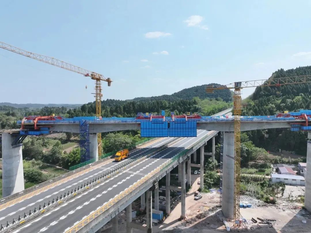 在施工過程中,項(xiàng)目團(tuán)隊(duì)主要面臨兩大安全挑戰(zhàn):一是高空作業(yè)。處于跨遂資高速特大橋邊跨位置的26號、29號橋墩最高達(dá)40.5米,且為空心墩,作業(yè)空間是僅僅50-65厘米厚的墩壁,作業(yè)人員需在高空的狹小作業(yè)面內(nèi)完成鋼筋綁扎、模板安裝等高難度工作,安全風(fēng)險(xiǎn)較大。項(xiàng)目團(tuán)隊(duì)采用全封閉防護(hù)系統(tǒng)+智能預(yù)警裝置,應(yīng)用裝配式內(nèi)作業(yè)平臺,充分增加作業(yè)空間,有效提高風(fēng)險(xiǎn)作業(yè)的安全性。二是跨線施工。造橋機(jī)全封閉兜底最低點(diǎn)距離高速路面僅6.1米,既要確保作業(yè)安全,又要保證高速公路正常通行,極為考驗(yàn)項(xiàng)目的管控能力。項(xiàng)目團(tuán)隊(duì)以“層層穿透、責(zé)任到人、管控到位”為目標(biāo),建立起“項(xiàng)目部—工區(qū)—班組”三級安全管理體系,強(qiáng)化跟班、重點(diǎn)監(jiān)控,為跨線施工提供了有力安全保障。