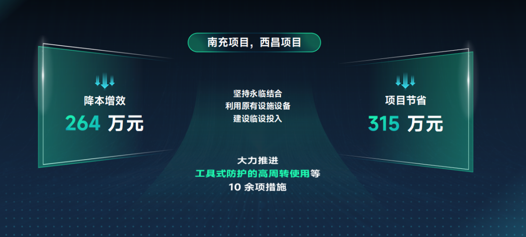 在施工組織方面,落實(shí)永臨結(jié)合策略減少臨時(shí)道路建設(shè)費(fèi)用及后期拆除費(fèi)用、利用原有設(shè)施設(shè)備升級(jí)改造、工具式成品防護(hù)周轉(zhuǎn)使用等10余項(xiàng)措施,達(dá)到降本增效的目的。